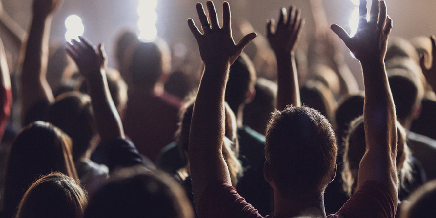 These people are raising their hands. It's not because they have coffee, because you can plainly see that their hands are empty. They are probably singing. You can sing with us on Sunday mornings, too. Have coffee first, and then sing. Coffee. Sing.