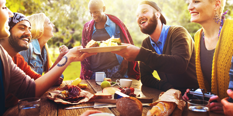 These people are eating food. Looks yummy! Too bad you can't have any.