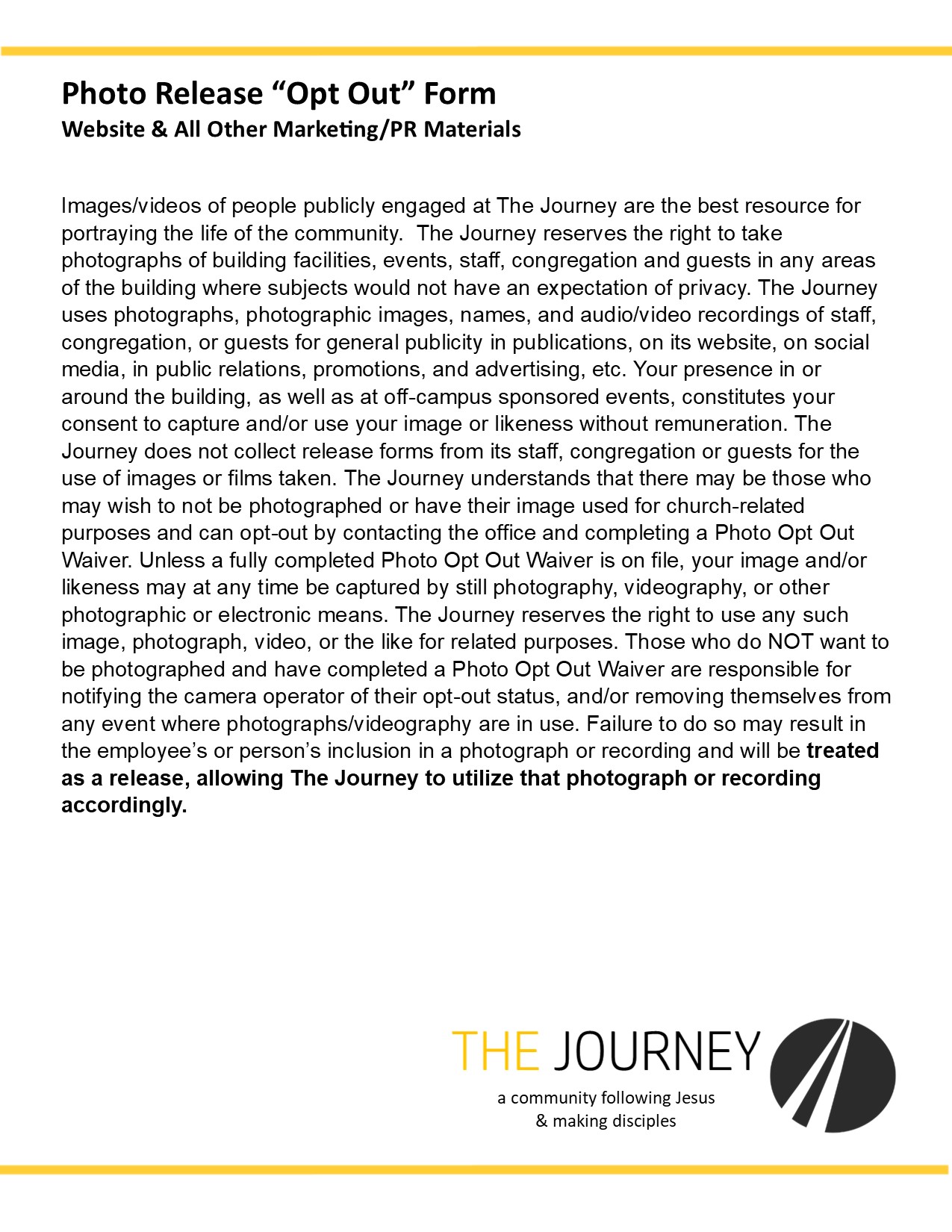If you want to opt out, you can fill out the Media Opt Out form and send it to thejourneymi@gmail.com