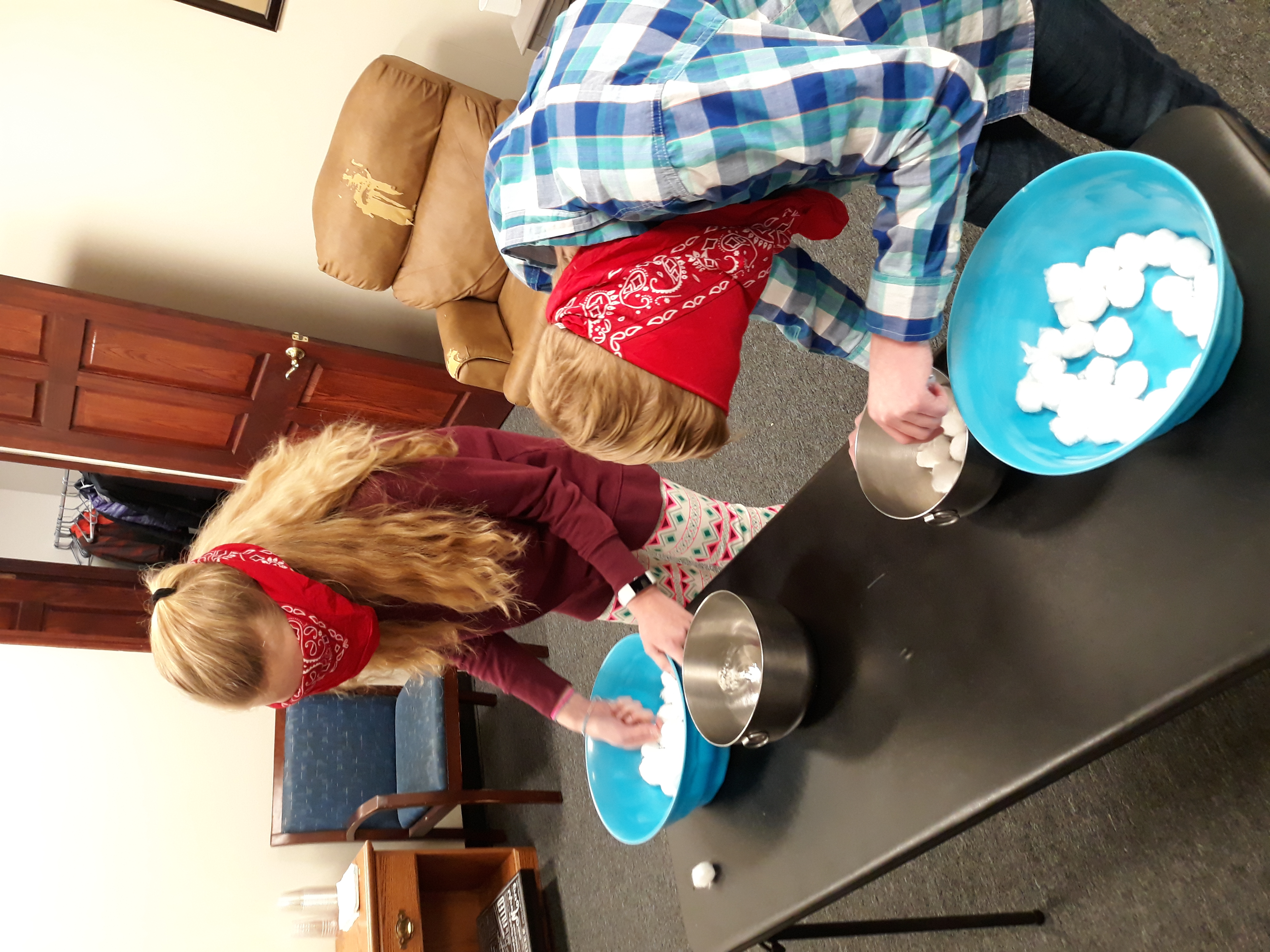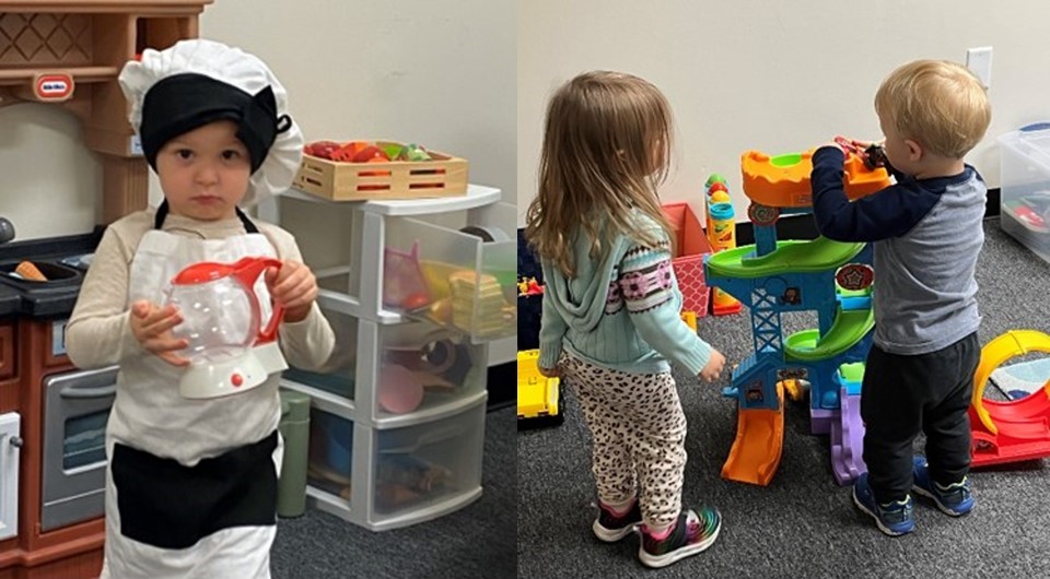 Kids ages 3-5 have a lesson and crafts together during the service. A teacher and helper are in the room. Parents can check their kids in before the gathering time between 10:00AM-10:10AM.