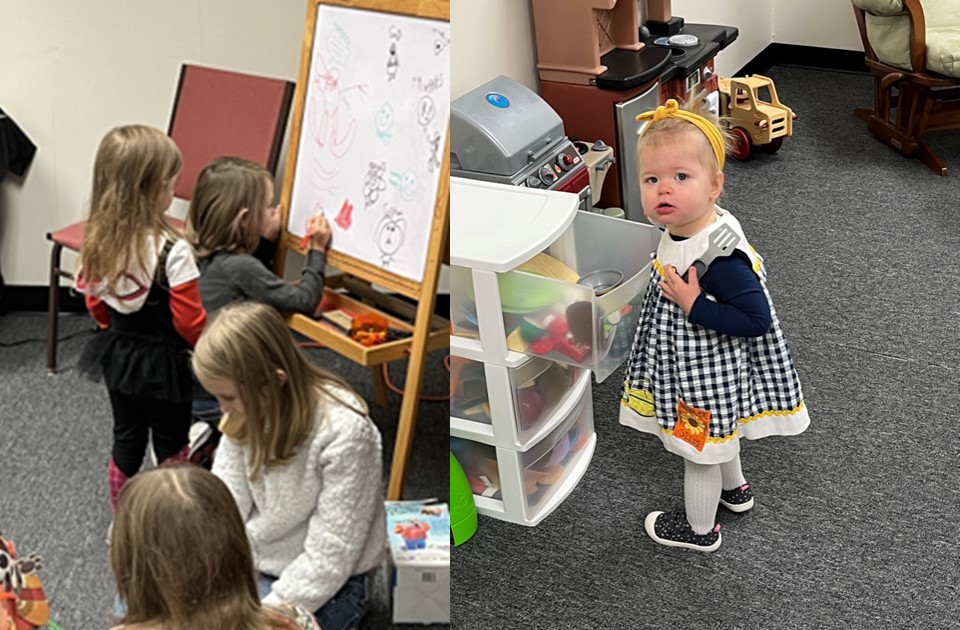 A staffed nursery is provided during the service for infants and toddlers.