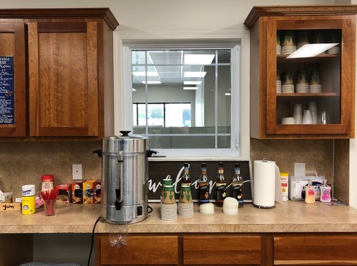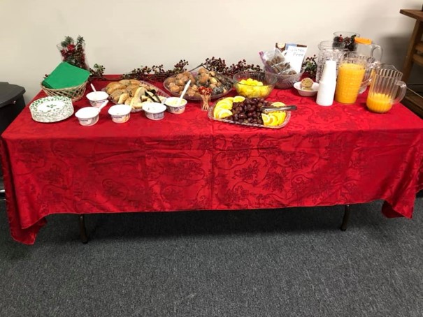-good coffee, real creamer, bagels, donuts and fruit: before and after the service. Get up for more anytime!